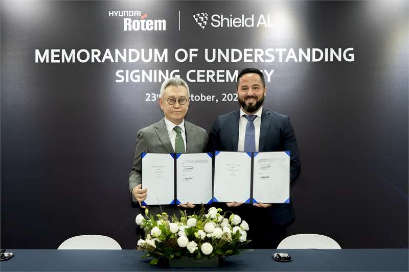 현대로템은 지난 23일 경기 고양시 킨텍스에서 열린 '2025 서울 국제 항공우주 및 방위산업 전시회(ADEX)'에서 미국의 AI 솔루션 업체인 '쉴드AI'와 국방 AI 기반 다목적 드론 운용 기술개발을 위한 업무협약(MOU)을 맺었다고 24일 밝혔다.이번 MOU는 전장에서 발생하는 비선형적 위협에 대응할 수 있는 자율