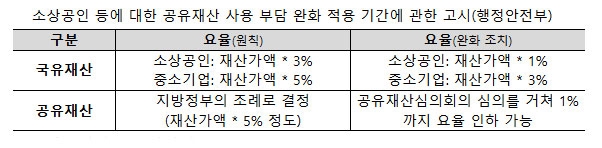 정부는 이를 위해 '소상공인 등에 대한 국유재산 사용 부담 완화에 관한 고시' 등 관련 규정 개정을 완료했다.